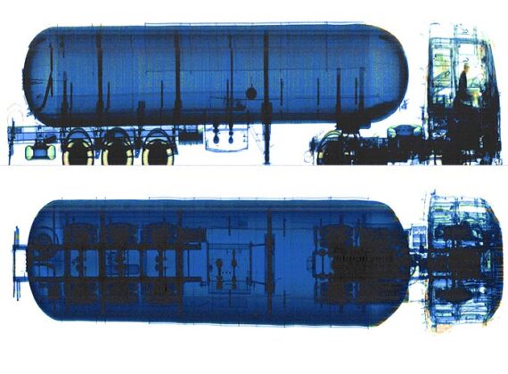It provides X-ray inspection of vehicles in two projections (downward and lateral). Two imaging angles significantly improve the detection capabilities and eliminate “the blind zones” of an inspected vehicle, enabling X-ray beams to penetrate all parts of the vehicle (including fuel tank, seats, wheels, seats, motor, etc.).